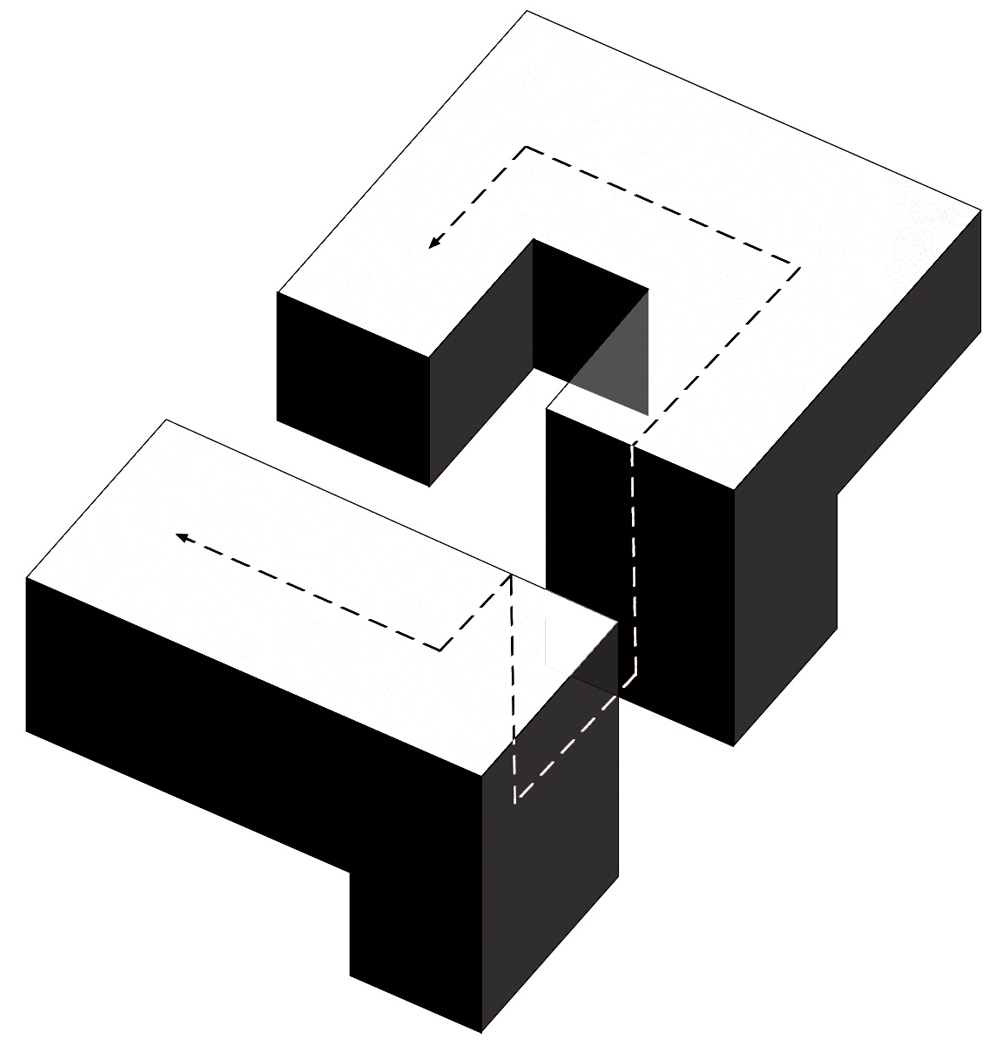 For us, the empty space was important in this project, so that first, empty spaces were created according to the program and the wishes of the client, then other parts of the project, like a continuous loop, formed around these voids. This solution is the result of an indirect dialogue and quotation with two projects of Koolhaas (a very large library and CCTV project in China). Subsequently, the project was accompanied by a fundamental change in the traditional Yazd homes program, and the fact that the kitchen was located in Yazdi houses somewhere outside of the home, and this also expressed the status of woman in the traditional world. But in this project, the kitchen is the focal point of the house, in which both the private space and the public space are in contact, and represents the position of the woman in the modern world. Regarding the way in which the project is organized, the project is such that in the future two family members can be placed at the upper and lower levels and parents at an intermediate level if this is desired, which emphasizes the flexibility and economy of the old houses. Finally, the materials that are considered in the construction of this project are concrete and brick, one regional and the other international, which makes the double reading of the work and the establishment of a border between Iranian and global architecture.