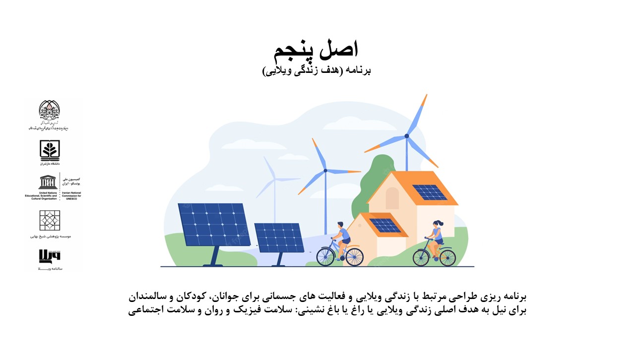 و- برنامه ریزی یک طراحی مرتبط با زندگی ویلایی و فعالیت های جسمانی برای جوانان، کودکان و سالمندان.