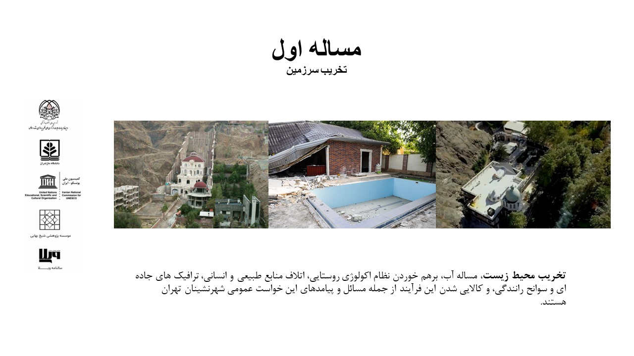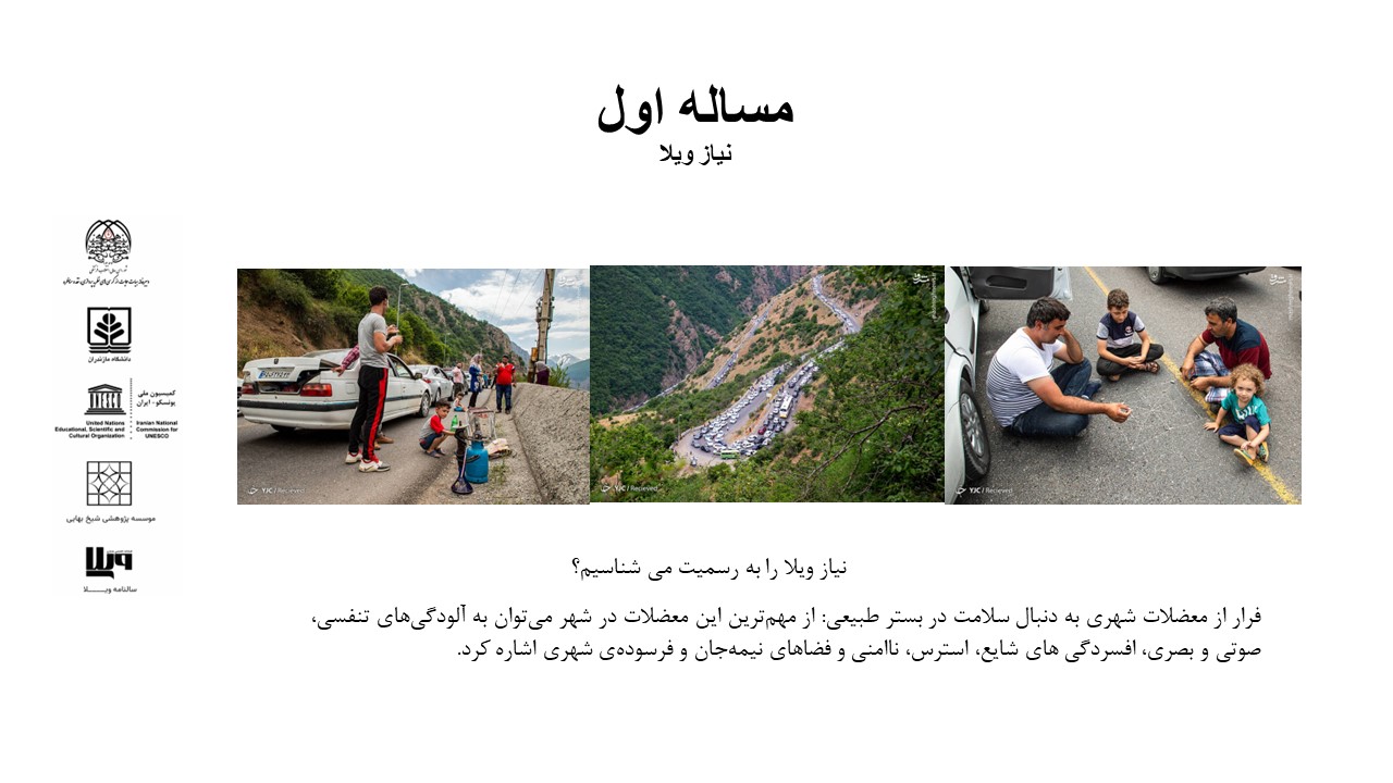 ویلا یا همان مسکن دومِ تفریحی در طرح های توسعه ای در نظر گرفته نمی شود و طبق قوانین هیچ گونه اجازه ای جهت تصرف و دست درازی برای ایجاد آن در محدوده/حریم شهرها و روستاها وجود ندارد. دلایل بسیاری از سوی کارشناسان و مسئولان مطرح می شود که بر جنبه ها ی سختگیرانه و جلوگیری از ساخت و ساز ها تأکید دارند؛ مانند به خطر افتادن امنیت غذایی کشور با تغییر کاربری زمین های کشاورزی، تخریب منظر طبیعی، آثار منفی بر فرهنگ محلی، زمین خواری و جلوگیری از مهاجرت های ناشی از تغییرات اقلیمی؛ به تعبیری دیگر، از نظر آن ها حتی کاربری یک متر از زمین های کشاورزی و باغات نباید تغییر کند. این دغدغه ها شامل اراضی منابع طبیعی و جنگل ها هم هست که متولی متفاوتی دارند، اما کماکان ساخت و ساز ها با شدت فراوان در حریم و حاشیه ی شهرها و روستاها و مناطق درجه ی ۱ و ۲ از لحاظ آب و هوا درحال رخ دادن است. این تخریب ها دقیقاً جاهایی اتفاق می افتد که مستعد کشاورزی و باغداری هستند. تخریب محیط زیست، مسئله ی آب، برهم خوردن نظام اکولوژی روستایی، اتلاف منابع طبیعی و انسانی، ترافیک های جاده ای، سوانح رانندگی و کالایی شدن این فرایند از جمله مسائل و پیامد های خواست عمومی شهرنشینان تهران است.